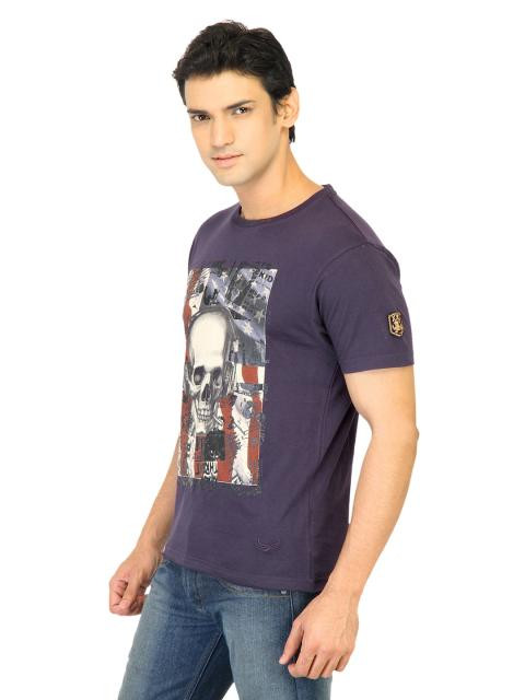 Up your style statement with ease by slipping into this T-shirt from flying machine. The soft cotton fabric offers exemplary comfort all day, while the shimmery print on the front adds a stylish edge. Team it with jeans and sports shoes for a casual look.