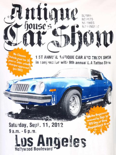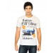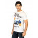 White T-shirt made of 100% cotton, has short sleeves with embroidered brand logo on the left sleeve and graphic print on the front