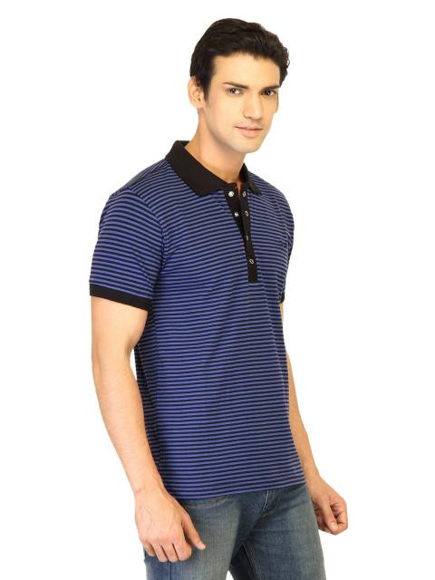 Purple and black striped polo T-shirt made of 100% cotton, has short sleeves with ribbed hems, tipped collar with a buttoned chest placket and embroidered brand logo on the left chest