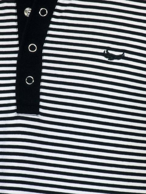 White and black striped polo T-shirt made of 100% cotton, has short sleeves with ribbed hems, tipped collar with a buttoned chest placket and embroidered brand logo on the left chest