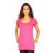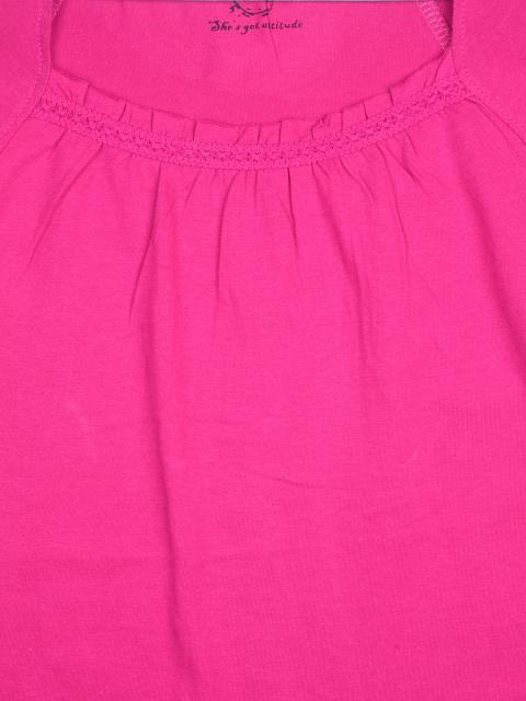 Fuschia pink top made of 100% cotton, having a gathered neckline with ruffles and short puff raglan sleeves