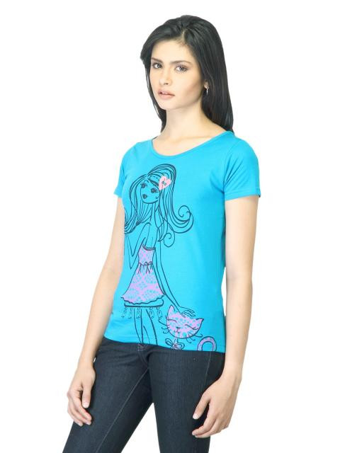 Blue round neck t-shirt made of 100% cotton, has short sleeves and graphic print on the chest