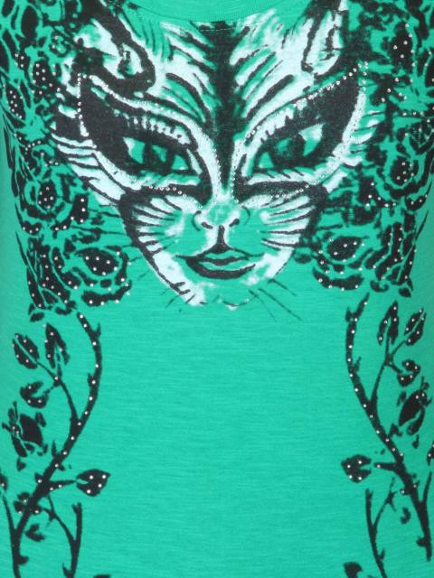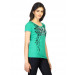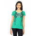 Green round neck top made of 100% cotton, has short sleeves with graphic print on the front and sequin detail on the chest