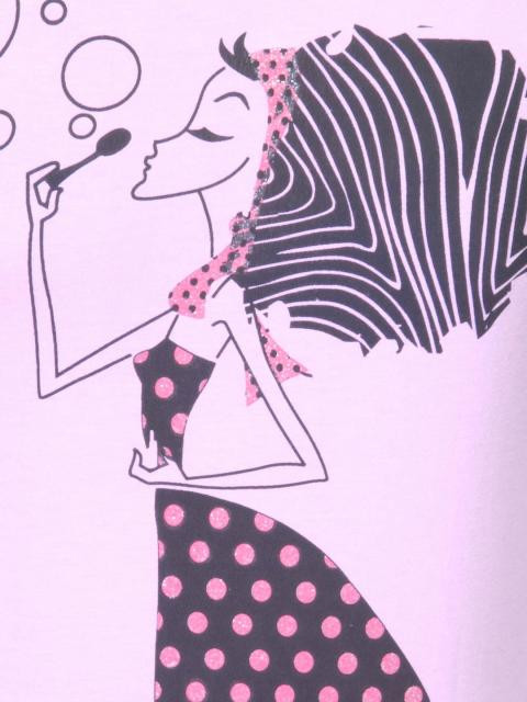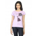 Lavender round neck top made of 100% cotton, has short sleeves and graphic print on the chest