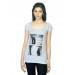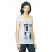 White boat neck top made of 100% viscose, has short raglan sleeves and graphic print on the chest
