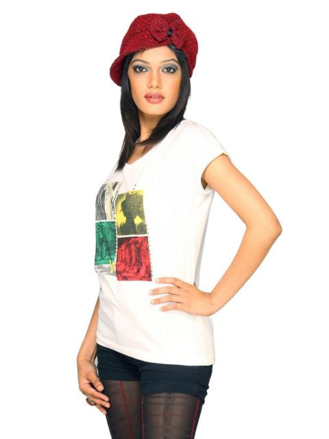 Perfect for those weekend revelleries, this white t-shirt captures the mood of those shacks of fun. While the metallic embellishments enhances the dark mood, the stitch detailing adds to it a funky touch. Team this T-shirt with jeans or shorts and sports shoes for that cool, casual look.