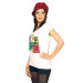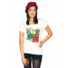 White round neck t-shirt made of 100% cotton, with rolled up arm holes, ribbed collar with in-seam, with a lee badge appliqued onto the inner neck, graphic print with metallic embellishments on the front and stitch detailing along the sides
