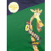 Green single jersey knit t-shirt, print on front, crew neck, navy blue panel in front, short  sleeves (one navy blue and one green), navy blue rib knit binding at neck