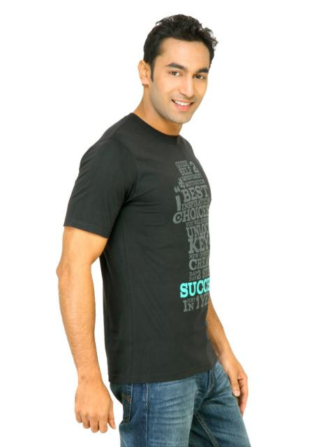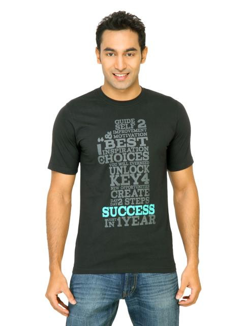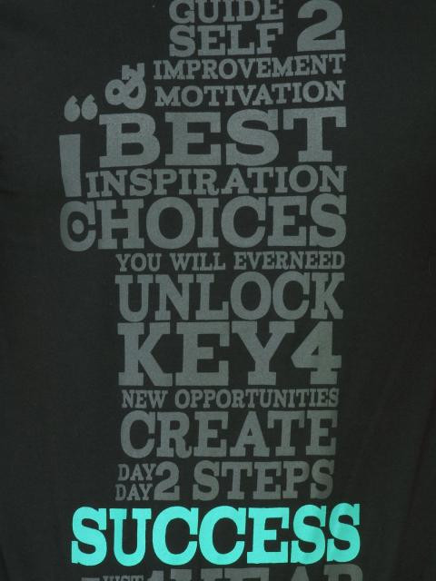 Dark grey graphic lettering on a black base T-shirt from mark taylor makes for a great casual wear. The words form the numeral one, while the word "Success" stands out to get your attention. Pair it with jeans and canvas shoes.