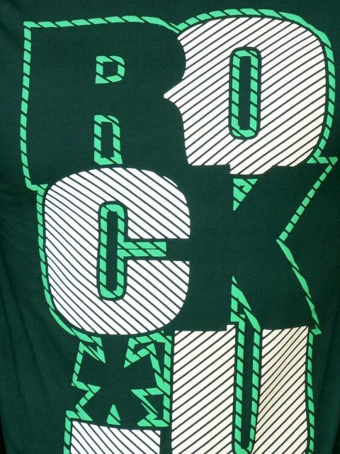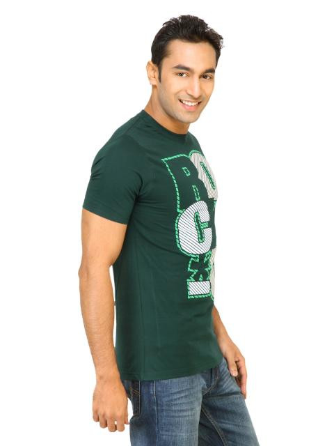 A bottle green T-shirt with graphic lettering from mark taylor makes for a great casual wear. The words "Rock U" in a combination of graphic and rubber print lettering shows the world that you live at your best. Pair it with jeans and canvas shoes.