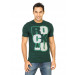 Bottle green T-shirt made of 50% polyester and 50% cotton, has a ribbed crew neckline, short sleeves and rubber and graphic print lettering on the front