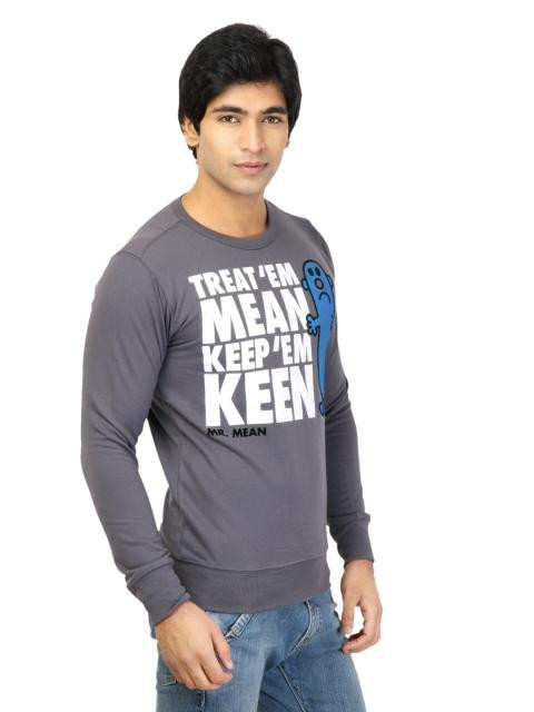 Charcoal grey sweatshirt made of 100% cotton, has a round ribbed neckline, full sleeves with ribbed cuffs, and print on the chest with felt detailing
