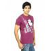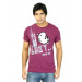 Magenta round neck T-shirt made of 100% cotton, has fabric tape detailing on the inseam of the neckline, short sleeves, and print on the chest with felt detailing