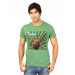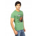Green round neck T-shirt made of 100% cotton, has fabric tape detailing on the inseam of the neckline, short sleeves, and print on the chest with felt detailing