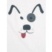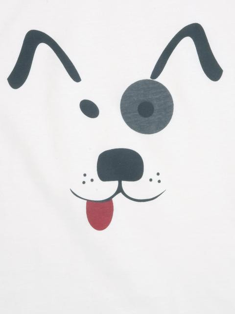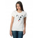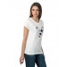 White T-shirt has a round neck, short sleeves with stitch detail and graphic print on the front