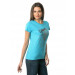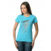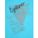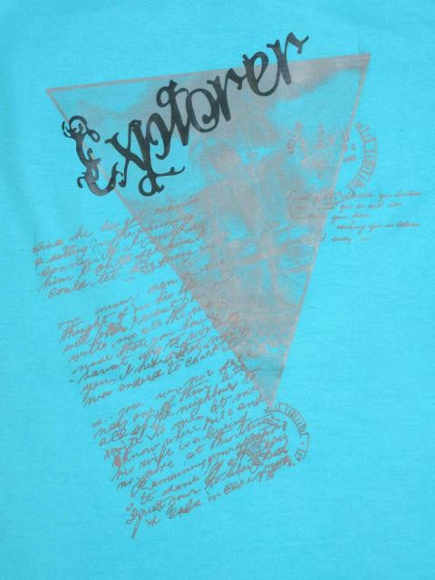 Blue T-shirt has a round neck, short sleeves with stitch detail, graphic and rubber print on the front