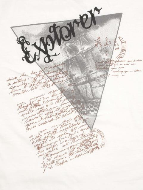 Cream round neck T-shirt, has short sleeves and print on the chest