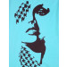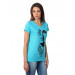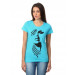 Blue T-shirt has a round neck, short sleeves with stitch detail and graphic print on the front