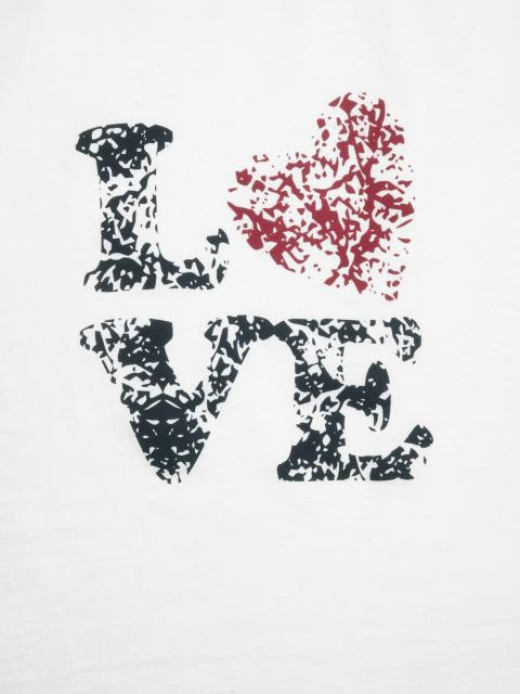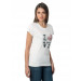 White T-shirt has a round neck, short sleeves with stitch detail and graphic print on the front