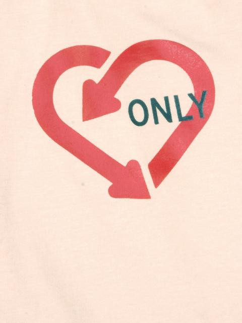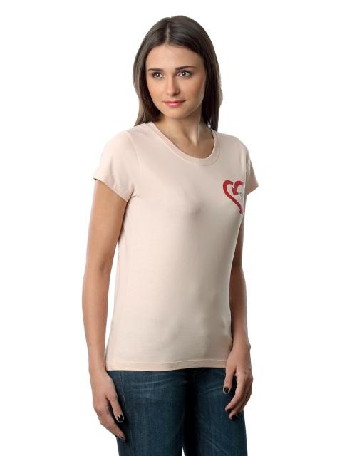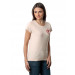 Peach T-shirt has a round neck, short sleeves with stitch detail and graphic print on the left chest