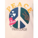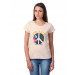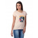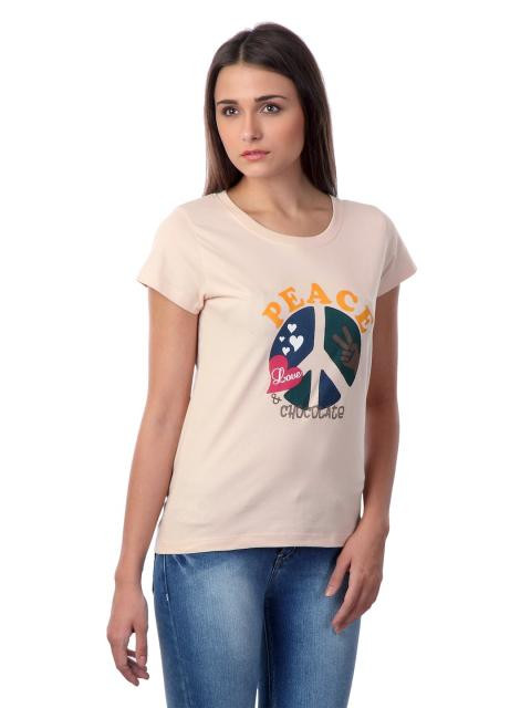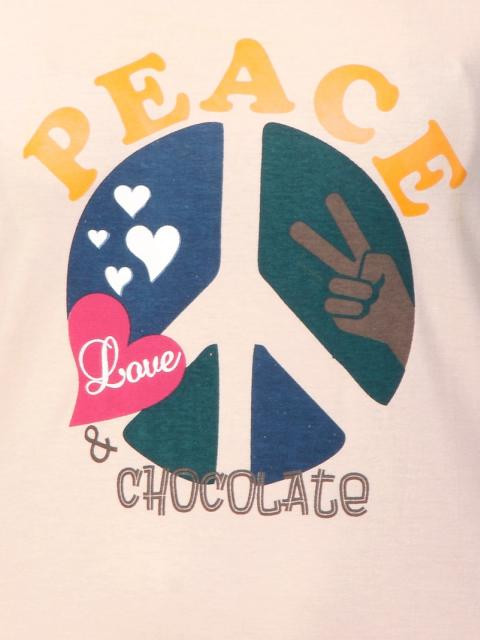 Peach T-shirt has a round neck, short sleeves with stitch detail and graphic print on the front