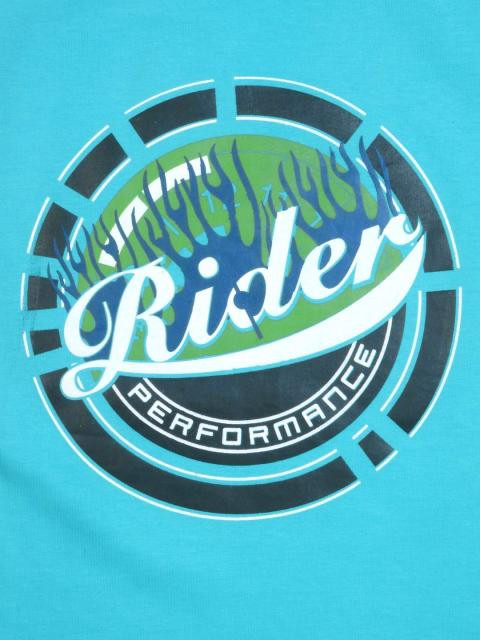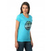 Blue T-shirt has a round neck, short sleeves with stitch detail, graphic and rubber print on the front