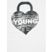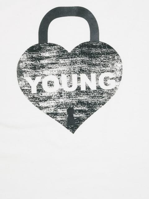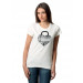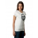 White T-shirt has a round neck, short sleeves with stitch detail and graphic print on the front