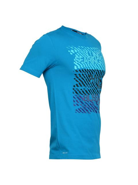This blue T-shirt from nike is a perfect mix of sporty and bold styling. The graphic print with the words "lung searing, physical, bliss" inspires you to get moving, while the Dri-fit fabric wicks sweat away from the body and keeps you feeling cool and comfortable all day. Team this with jeans or tracks.