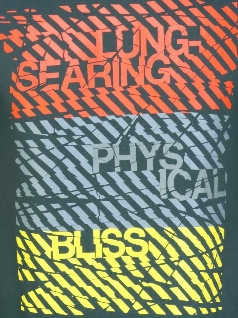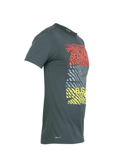 This charcoal grey T-shirt from nike is a perfect mix of sporty and bold styling. The graphic print with the words "lung searing, physical, bliss" inspires you to get moving, while the Dri-fit fabric wicks sweat away from the body and keeps you feeling cool and comfortable all day. Team this with jeans or tracks.