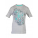 Grey T-shirt made of 100% cotton, has a ribbed crew-neck with tape detailing on the inseam, short sleeves, graphic print on the front and swoosh logo towards the left hemline