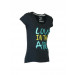 Grey T-shirt for women made of 100% cotton, has a round ribbed neckline, short sleeves with graphic print on the front