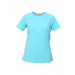 Blue round neck T-shirt for women made of 100% recycled polyester, has short raglan sleeves and nike swoosh printed on the left chest and left sleeve