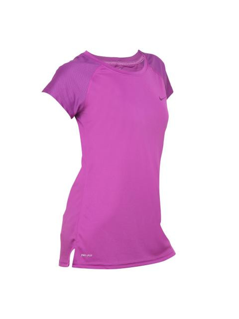 Yellow T-shirt made of 100% polyester, is engineered with Dri-Fit technology, has a round neck, short raglan mesh sleeves, and printed nike swoosh on the left chest