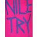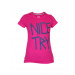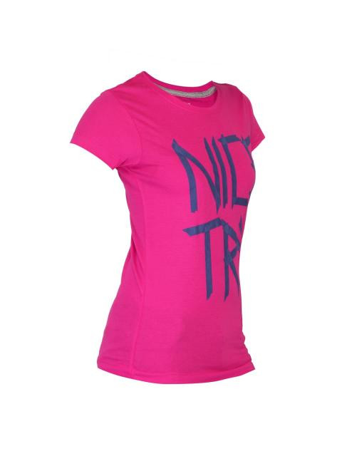 Pink T-shirt for women made of 100% cotton, has a round ribbed neckline, short sleeves with nike swoosh and graphic print on the front