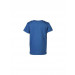 Dark blue T-shirt made of 100% cotton, has a ribbed round neckline with tape detailing on the inseam, short sleeves, distressed look print on the front and brand tab attached to the left hem on the front