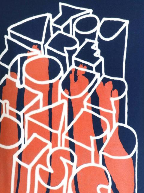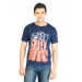 Navy blue T-shirt made of 100% cotton, has a round neck, short sleeves and graphic with flock print on the front