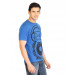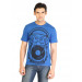 Blue T-shirt made of 100% cotton, has a round neck, short sleeves and graphic print on the front