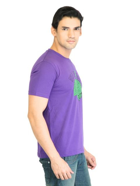 Purple T-shirt made of 100% cotton, has a round neck, short sleeves and graphic print on the front