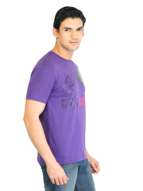 Purple T-shirt made of 100% cotton, has a round neck, short sleeves and graphic print on the front