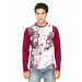 Maroon T-shirt made of 100% cotton, has a round neck, long sleeves with collection and brand embroidery on the left sleeve, and graphic print on the front