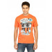 Saffron orange round neck t-shirt made of 100% cotton that has ribbed round neckline with tape detailing on the inseam, short sleeves and graphic print on the front