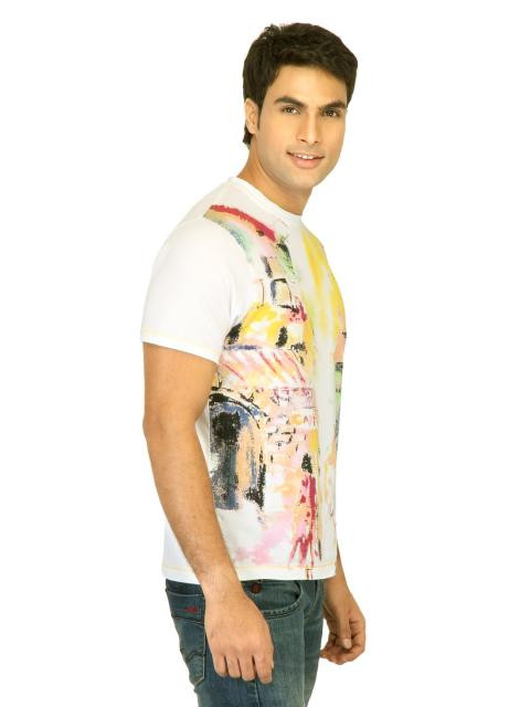 Update your casual style with this white T-shirt from probase. The chipped mural look graphic print on the front panel showing an old town street gives this tee a nostalgic vibe. Team this with jeans and sneakers for a cool look, while the fabric keeps you feeling fresh and comfortable all day long.