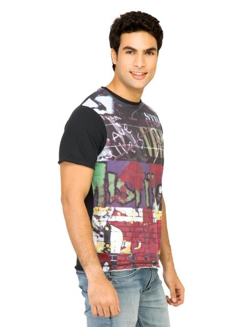 Dress freaky this winter party season in this psychedellic print T-shirt from probase. Crafted from soft cotton, this tee offers exemplary comfort. Team it with jeans, arty canvas shoes and spiked hair for a complete punk look.