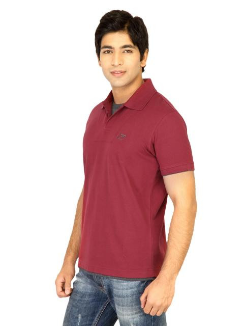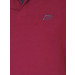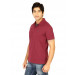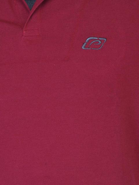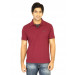 Red polo T-shirt, has a polo collar with a grey mock panel, short sleeves