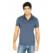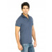 Indigo blue polo T-shirt made of 100% cotton, has fabric tape detailing on the inseam of the neckline, short sleeves with ribbed hems and a mock foldover placket made of 98% cotton and 2% elastane, half buttoned placket, and embroidered brand logo on the chest