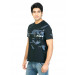 Black round neck T-shirt made of 100% cotton, has fabric tape detailing on the inseam of the neckline, short sleeves, a half buttoned placket, and printed brand logo on the chest