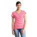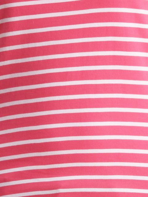 Pink striped t-shirt made of 100% cotton, has a U-neckline, has short sleeves, embroidered branding on the left chest and printed branding at the back