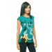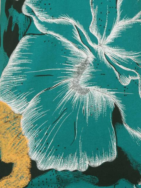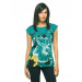 Green printed top made of a knitted polyester blend fabric, sleeveless with broad shoulders to create the appearance of short sleeves and has a boat neckFit