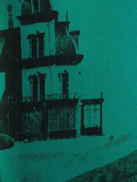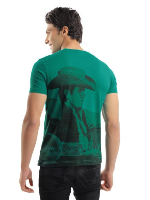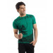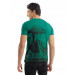 Green round neck T-shirt, has short sleeves and print on the front and back