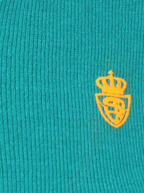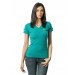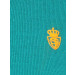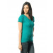 Green T-shirt with a ribbed V-neck, foldable short sleeves with mid arm button tabs and ribbed cuffs, printed branding on the left chest and a ribbed hem